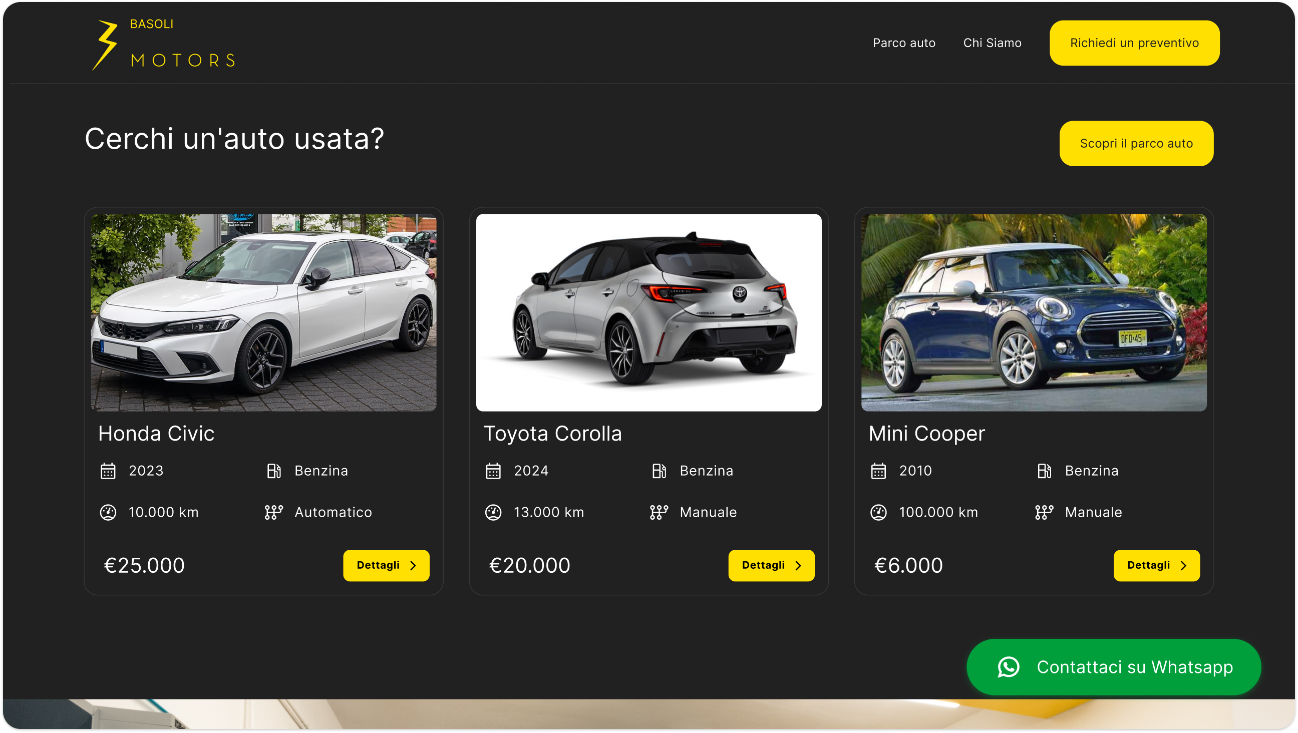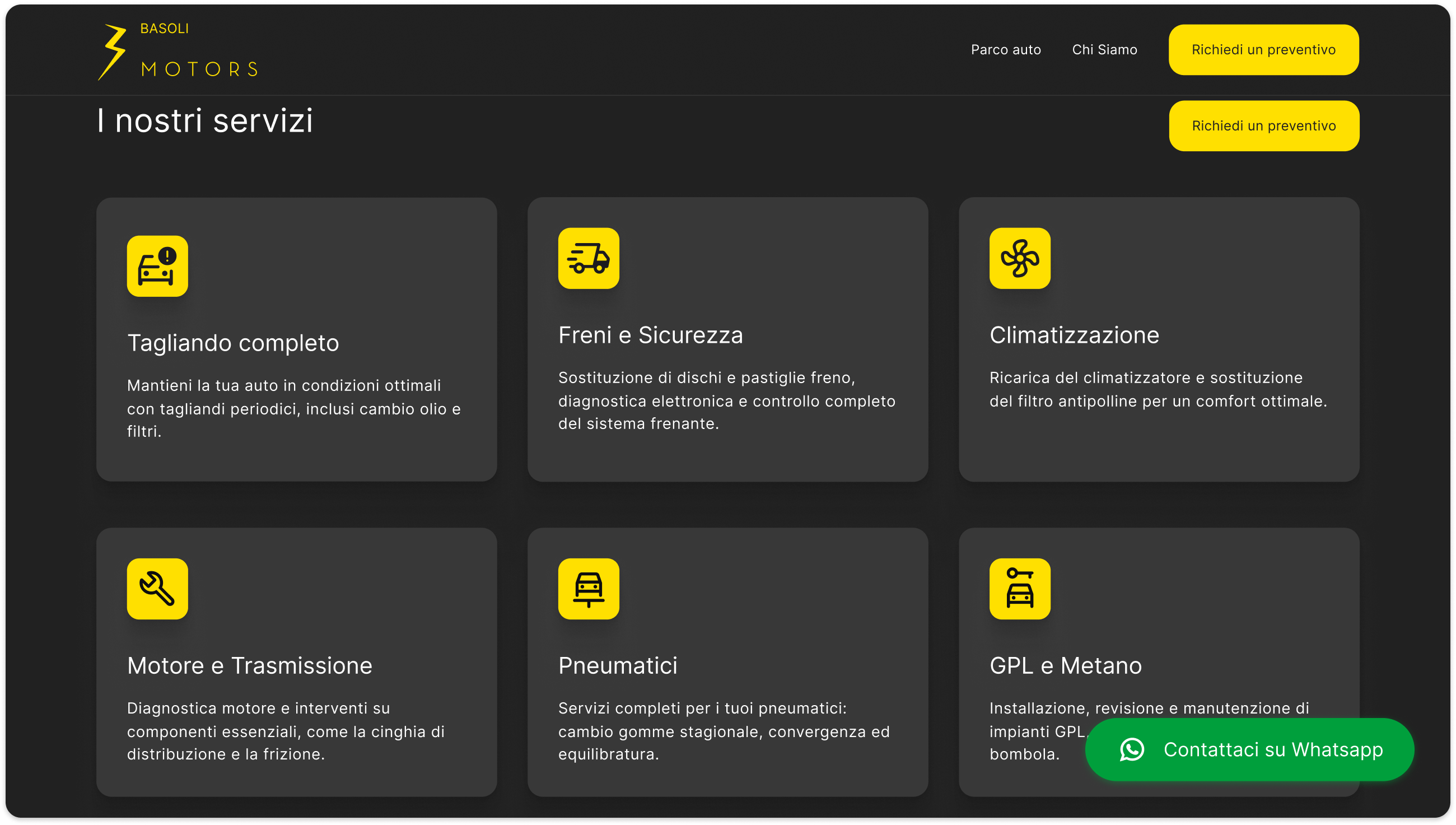 Basoli Motors is a local automotive garage offering both mechanical services and a curated selection of used cars. I designed and developed a new website to give the business a professional, modern online presence — one that reflects trust, clarity, and accessibility. The site allows visitors to browse available vehicles, request quotes, and book appointments for services like repairs, inspections, and maintenance. Built with a user-first approach, the website makes it easy for customers to get in touch and for Basoli Motors to showcase its full range of offerings.