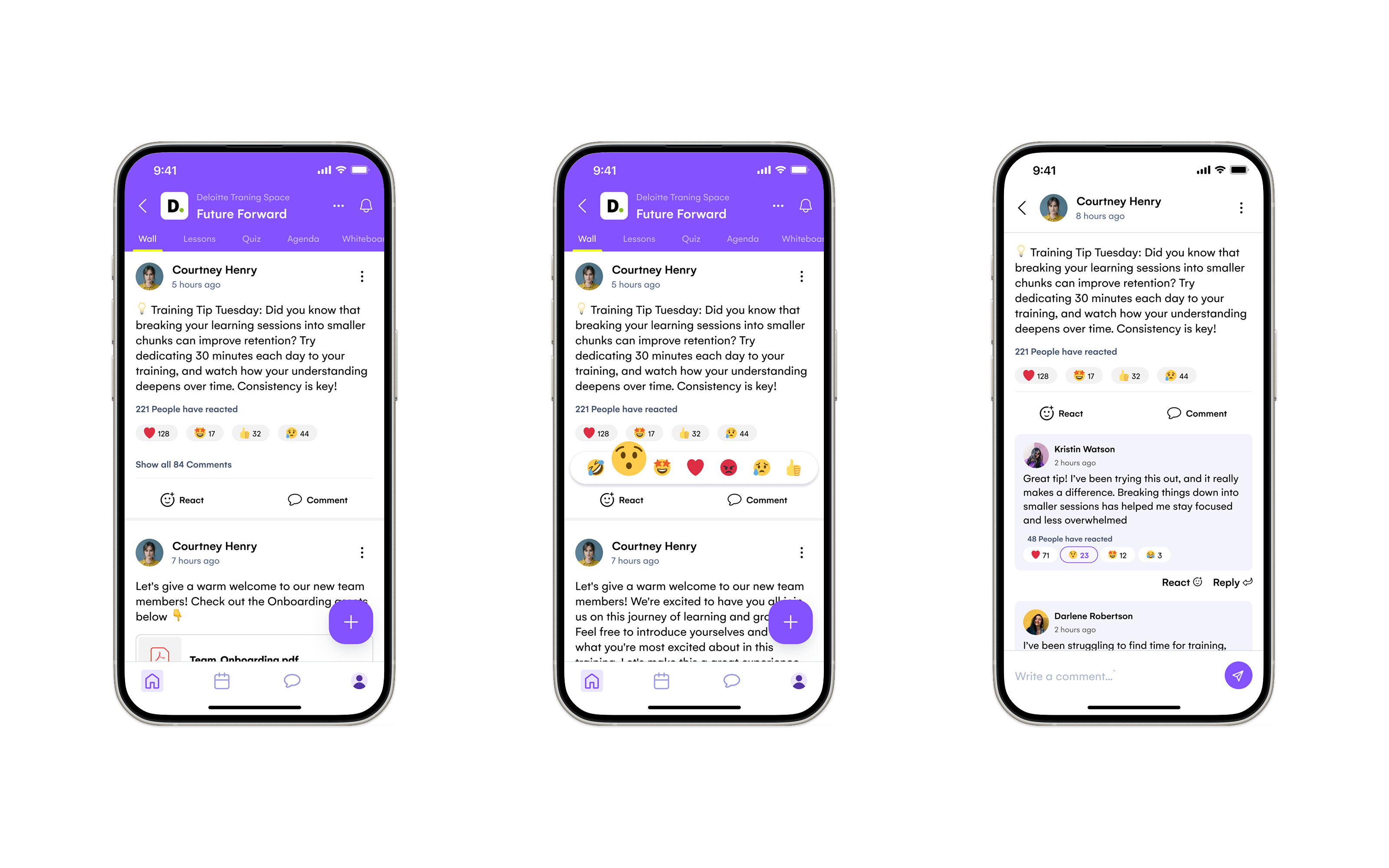 The Wall — the core space for classroom communication — was modernized both visually and functionally. We introduced essential social features such as reactions and user tagging, aligning the experience with the interaction patterns today’s students expect. These updates made the Wall more engaging, collaborative, and dynamic, encouraging participation and improving the overall sense of community within the app.
